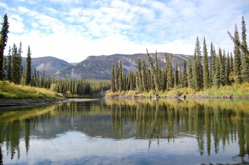 For the intermediate canoeist, The Big Salmon is a magic combination: a truly wild and scenic Yukon river that is accessible to paddlers. The Big Salmon is remote, seeing only a handful of paddlers each year. It’s winding, narrow, and offers a some exciting wave trains and eddies to play on, but the difficulties can be avoided and are also suitable for beginners, however basics of paddling should be necessarily present. Like much of Yukon, the river has its gold rush history, but today it remains in a pristine natural state, teeming populations of moose, Dall sheep, bears and beaver. The water is clear and cold. For the fisherman, this is an ideal chance to catch trout, grayling, pike and, if we’re lucky, migrating salmon in the fall.